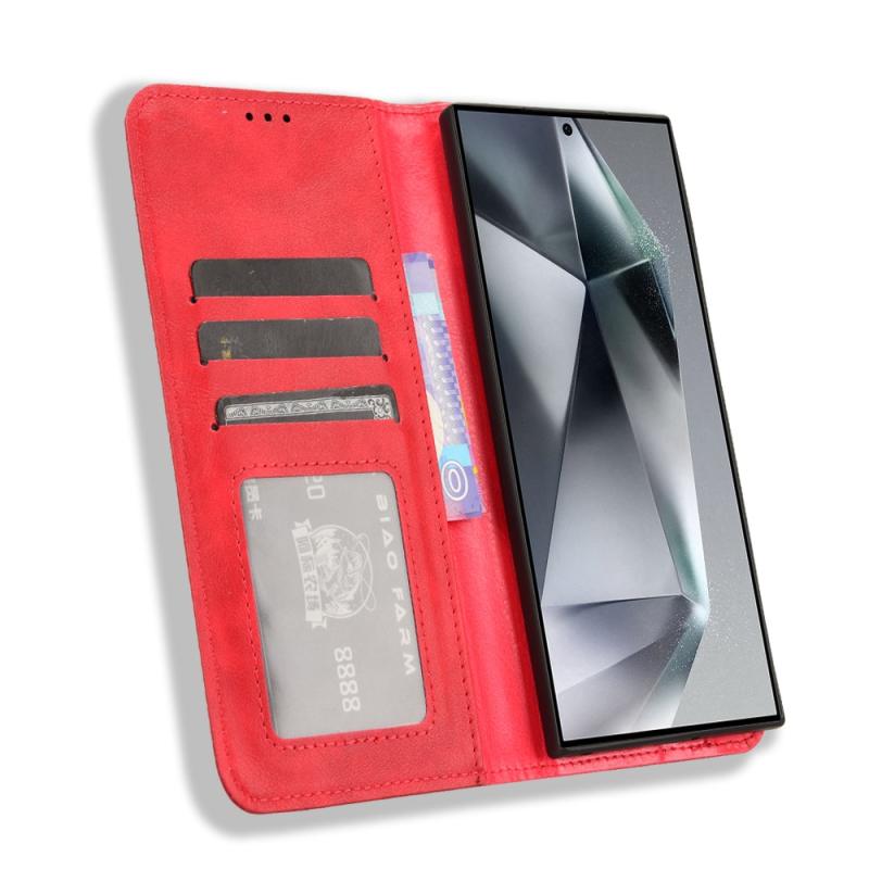 For Samsung Galaxy S24 Ultra 5G Magnetic Buckle Retro Texture Leather Phone Case(Red)