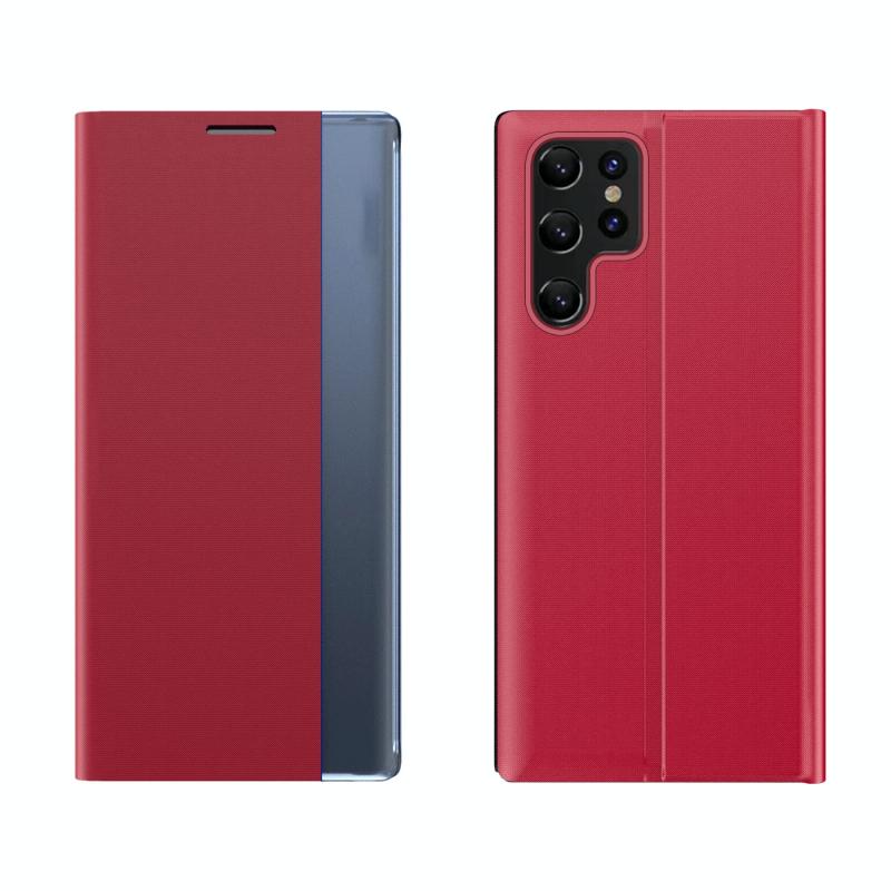 For Samsung Galaxy S24 Ultra 5G Plain Texture Cloth Attraction Flip Holder Leather Phone Case(Red)