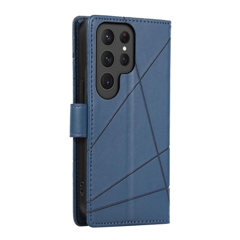 For Samsung Galaxy S24 Ultra 5G PU Genuine Leather Texture Embossed Line Phone Case(Blue)