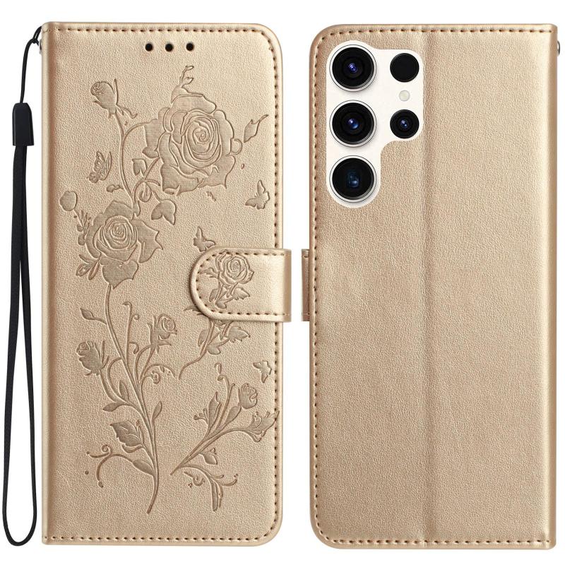 For Samsung Galaxy S24 Ultra 5G Rose Flower Embossing Pattern Leather Phone Case(Gold)