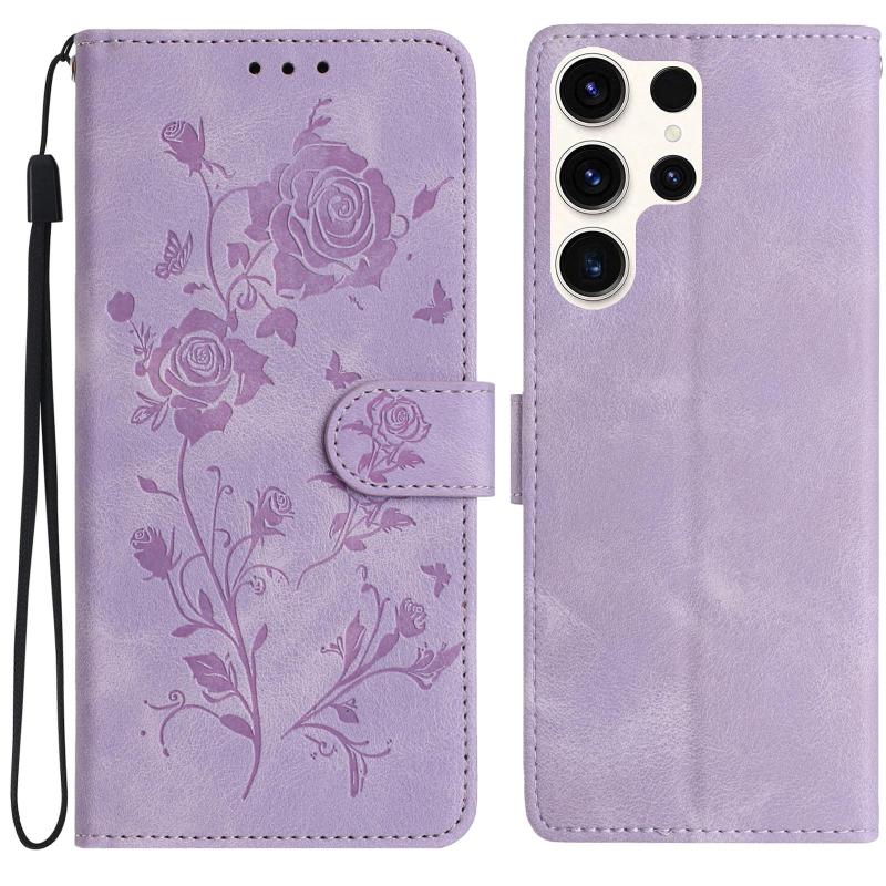 For Samsung Galaxy S24 Ultra 5G Rose Flower Embossing Pattern Leather Phone Case(Light Purple)