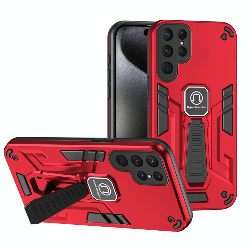 For Samsung Galaxy S24 Ultra 5G Shockproof Holder Phone Case(Red)