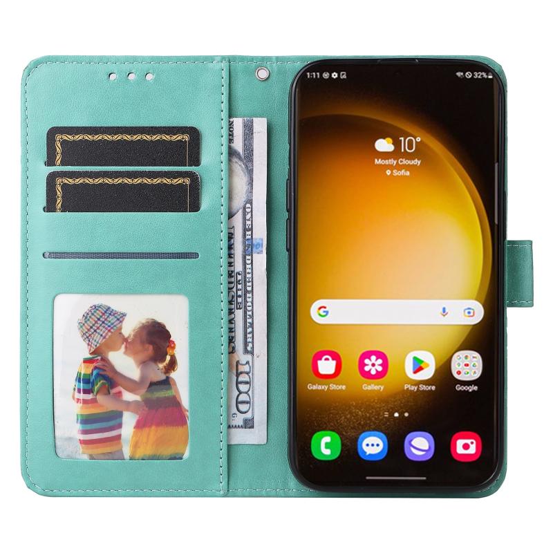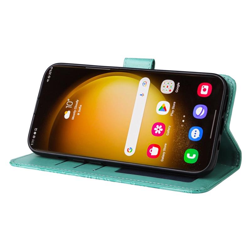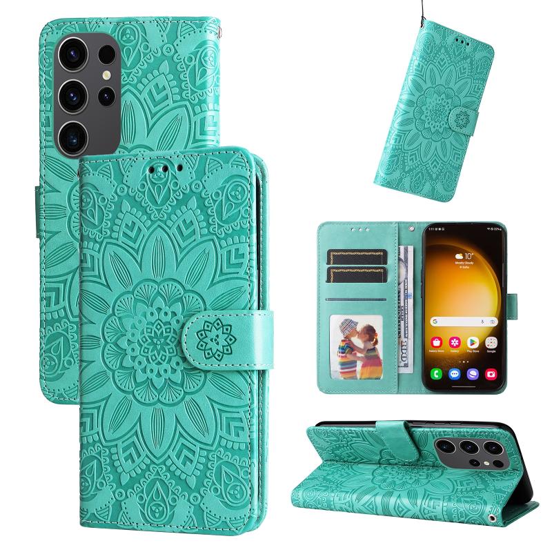 For Samsung Galaxy S24 Ultra Embossed Sunflower Leather Phone Case(Green)