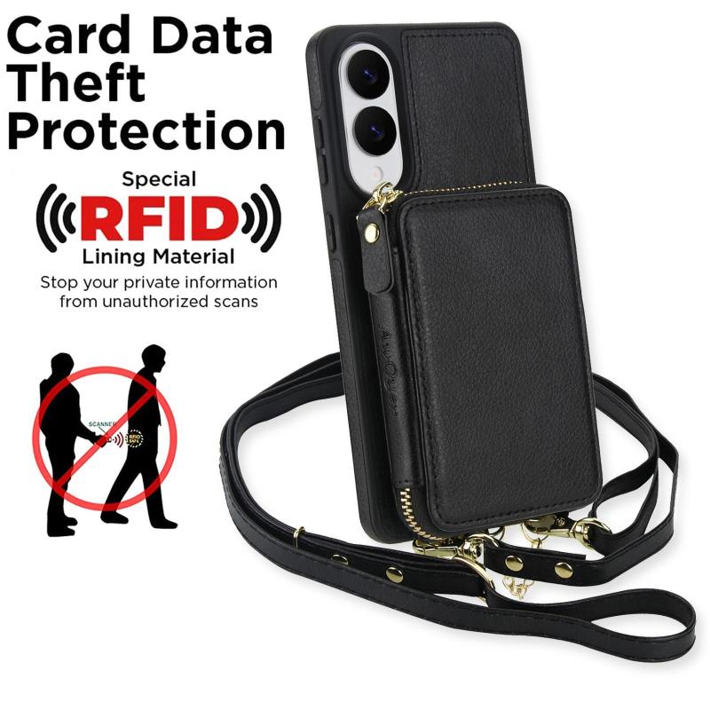 For Samsung Galaxy S25 Edge 5G AwQuer 2 in 1 Crossbody Zipper Wallet Leather Back Phone Case(Black) (Awquer)
