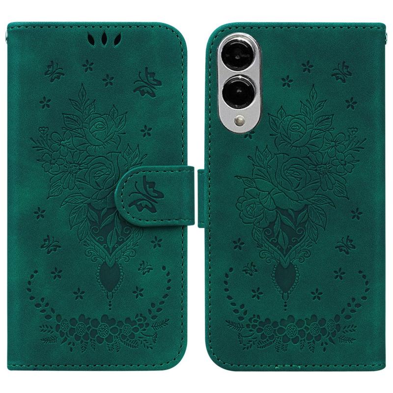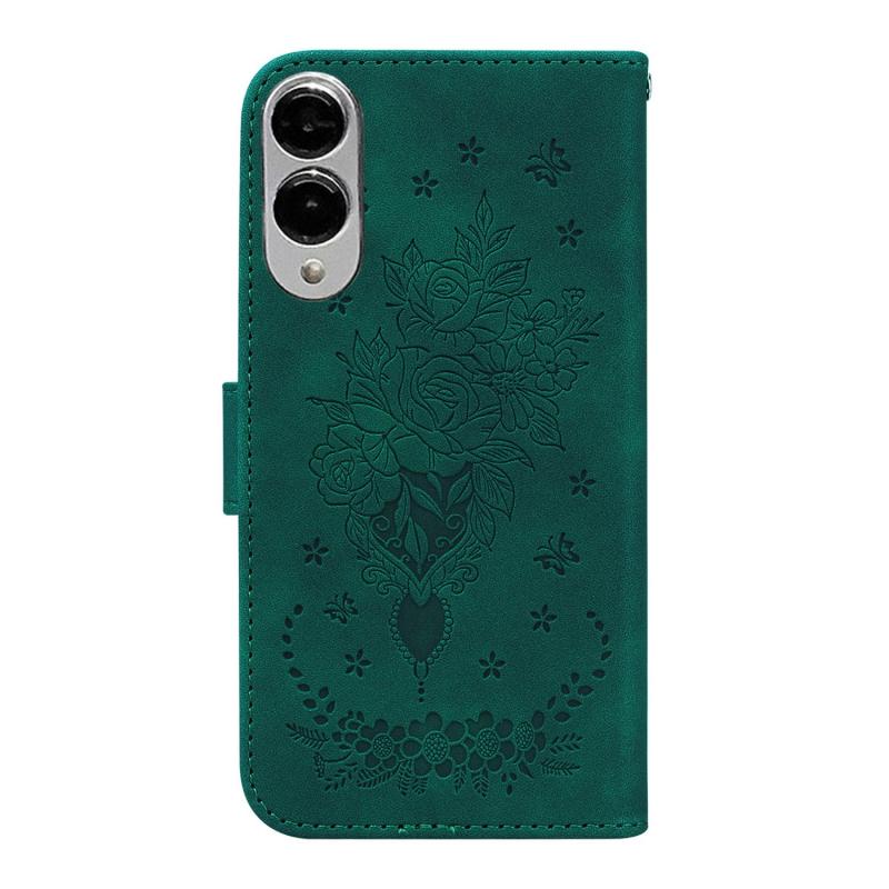 For Samsung Galaxy S25 Edge 5G Butterfly Rose Embossed Leather Phone Case(Green)