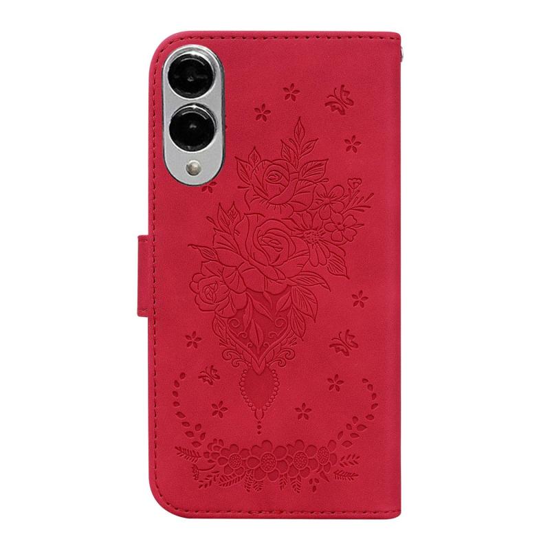 For Samsung Galaxy S25 Edge 5G Butterfly Rose Embossed Leather Phone Case(Red)