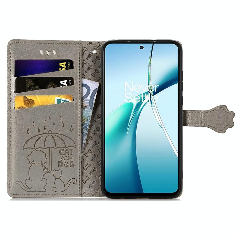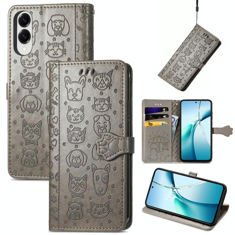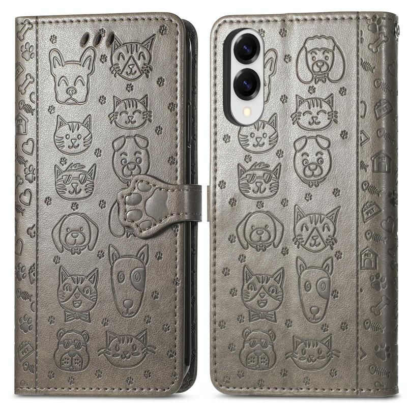 For Samsung Galaxy S25 Edge 5G Cat and Dog Embossed Leather Phone Case(Gray)
