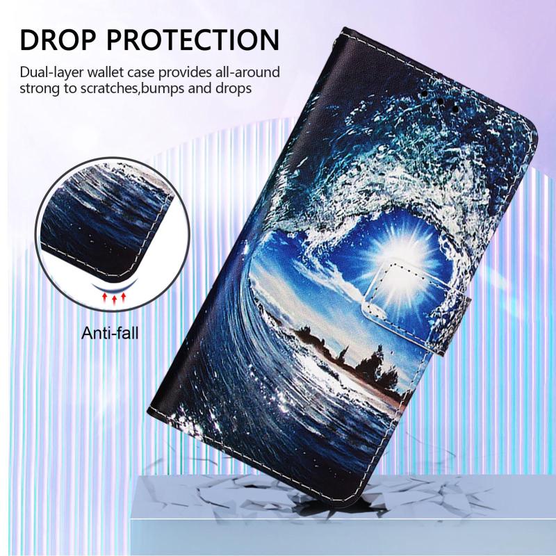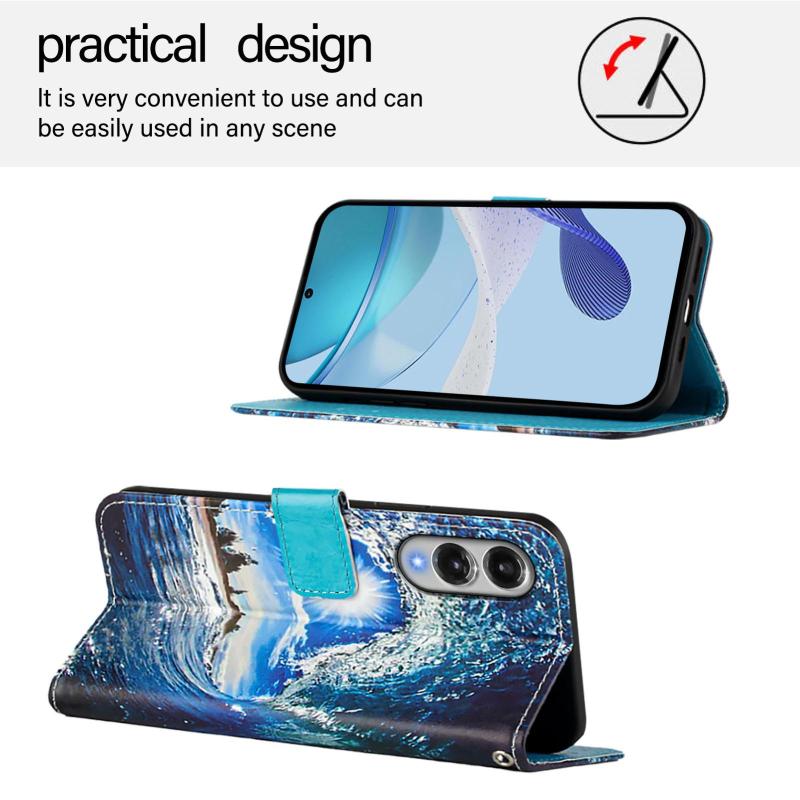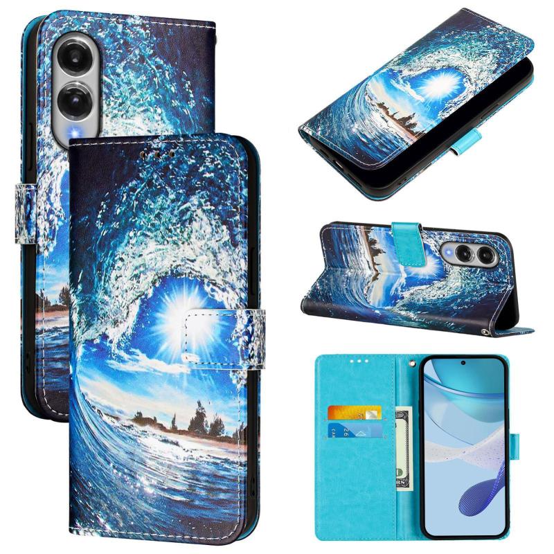 For Samsung Galaxy S25 Edge 5G Colored Drawing Pattern Plain Weave Leather Phone Case(Waves And Sun)
