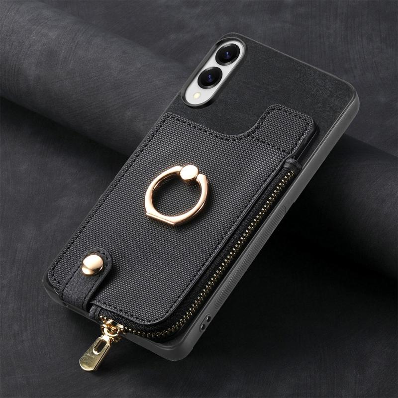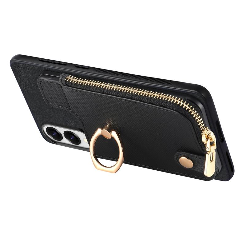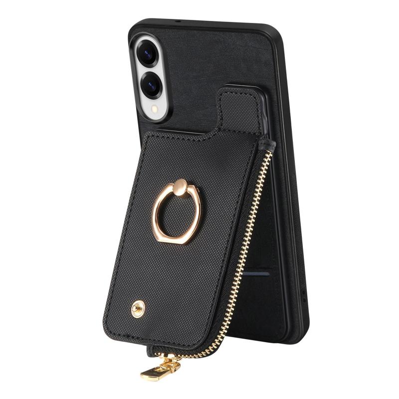 For Samsung Galaxy S25 Edge 5G Cross Leather Ring Vertical Zipper Wallet Back Phone Case(Black)