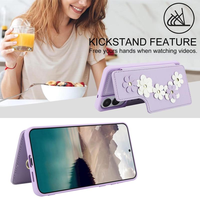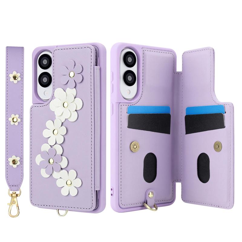 For Samsung Galaxy S25 Edge 5G Crossbody Flower Pattern Leather Phone Case(Purple)