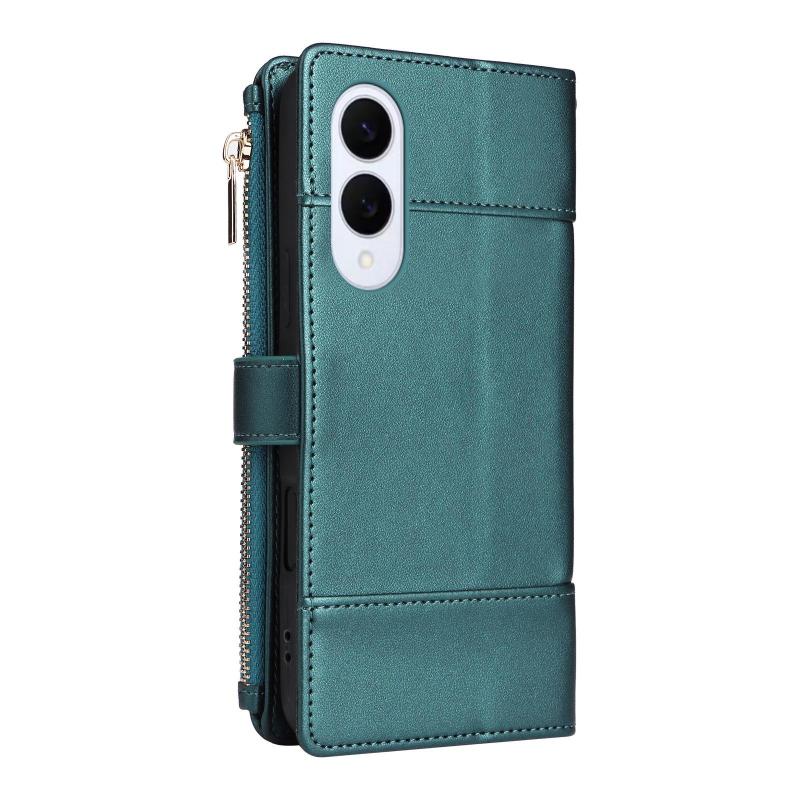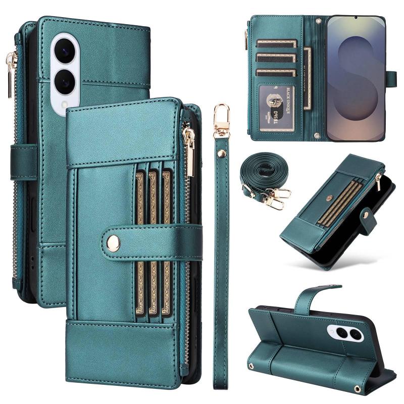 For Samsung Galaxy S25 Edge 5G Crossbody Strap RFID Blocking Zipper Wallet Leather Phone Case(Green)