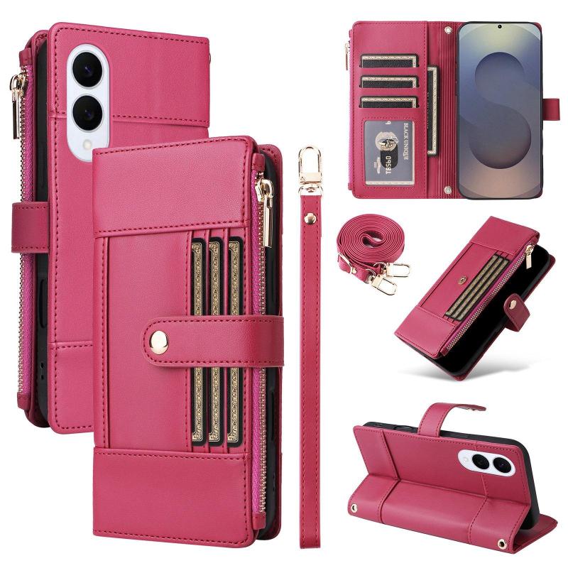 For Samsung Galaxy S25 Edge 5G Crossbody Strap RFID Blocking Zipper Wallet Leather Phone Case(Red)