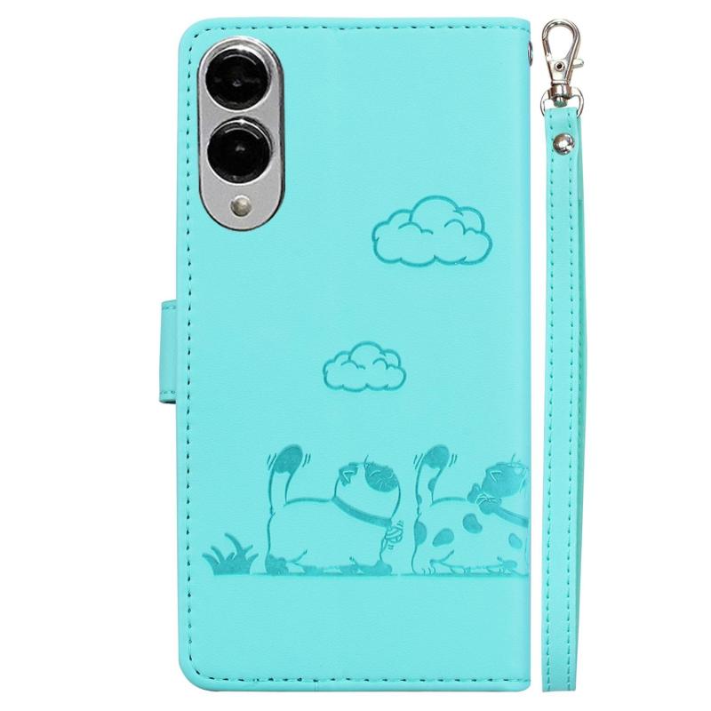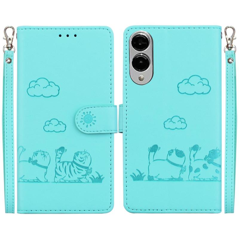 For Samsung Galaxy S25 Edge 5G Cute Cats RFID Leather Phone Case(Green)