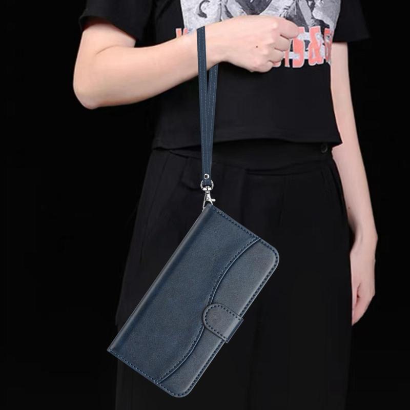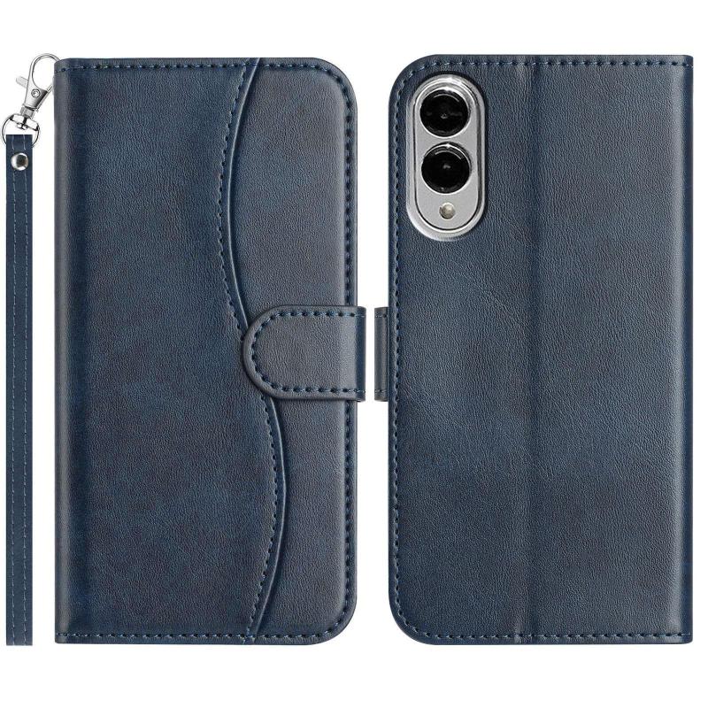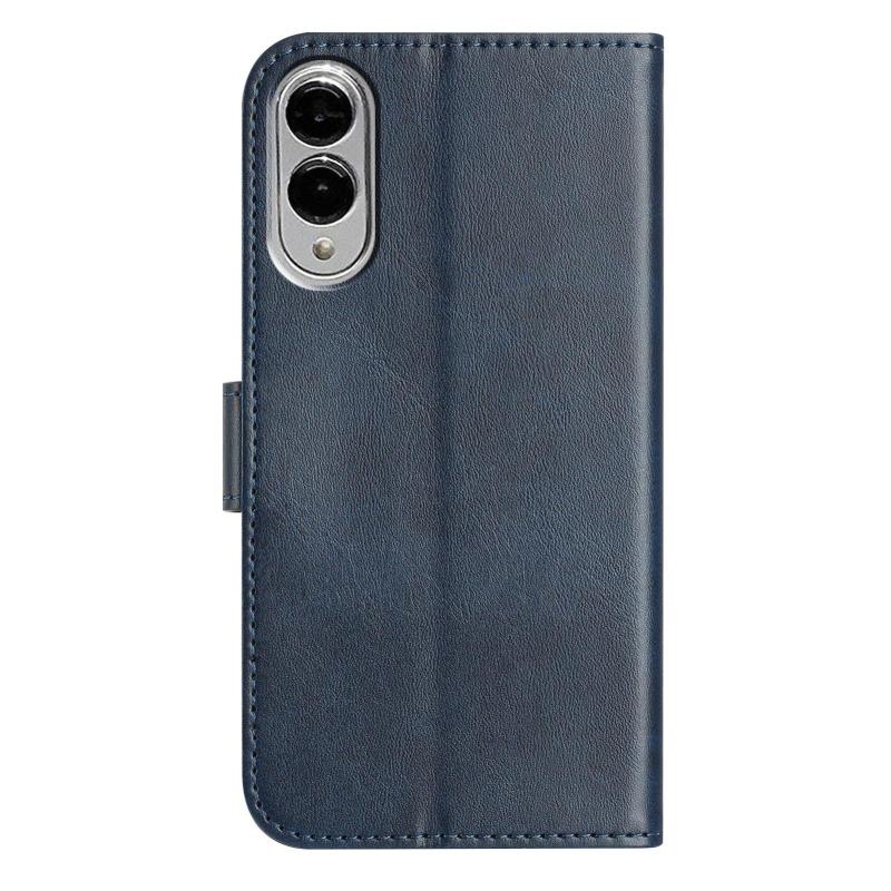For Samsung Galaxy S25 Edge 5G Dual-Folded S-shape Leather Phone Case(Navy Blue)