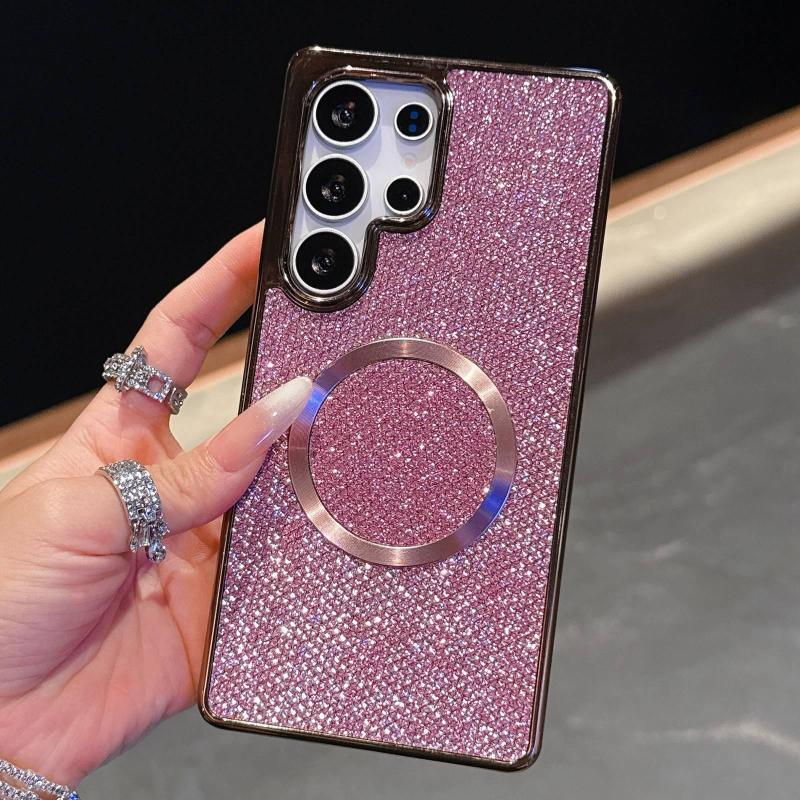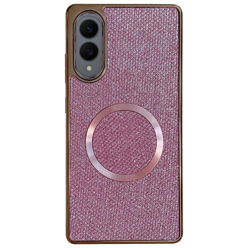 For Samsung Galaxy S25 Edge 5G Electroplating PC Glitter Grain MagSafe Phone Case(Pink)