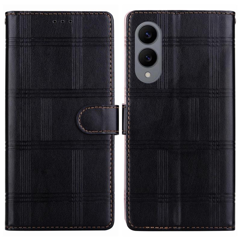 For Samsung Galaxy S25 Edge 5G Embossed Checkered Leather Phone Case(Black)
