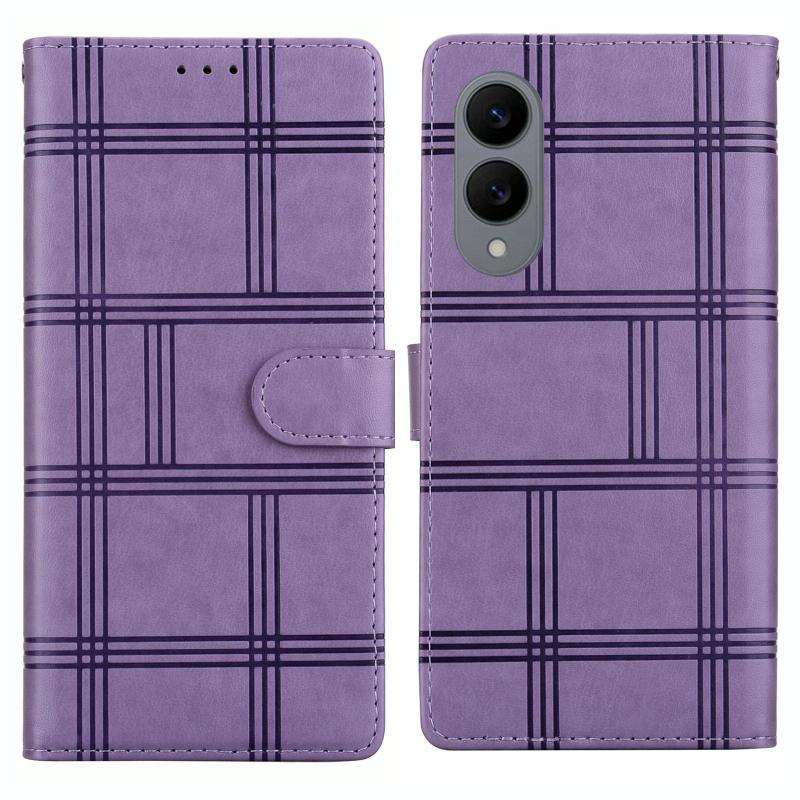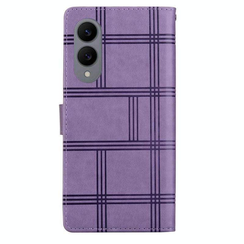 For Samsung Galaxy S25 Edge 5G Embossed Checkered Leather Phone Case(Purple)