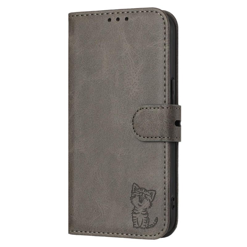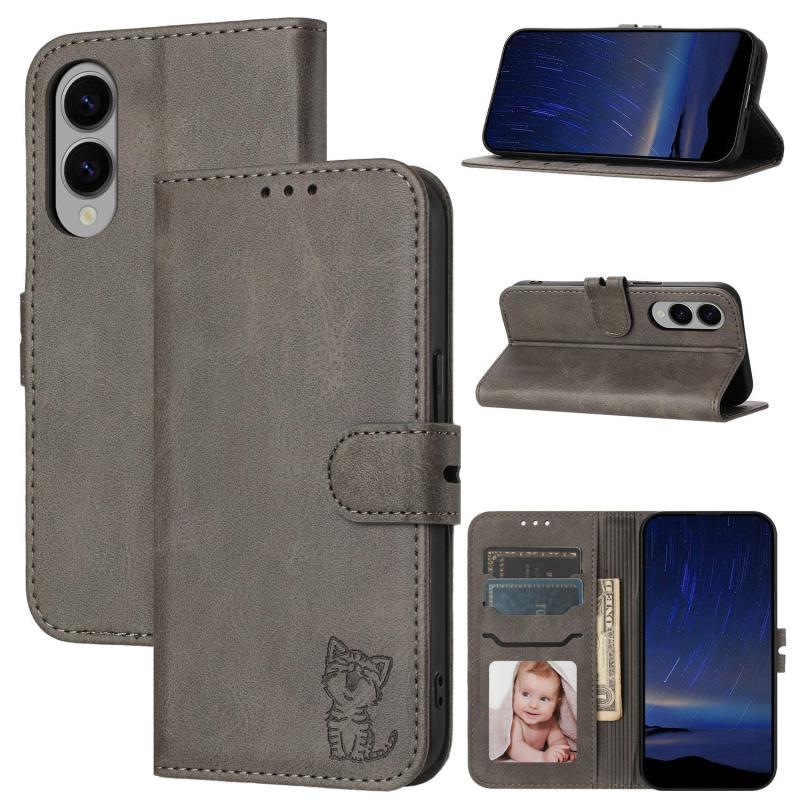 For Samsung Galaxy S25 Edge 5G Embossed Happy Cat Pattern Flip Leather Phone Case(Grey)
