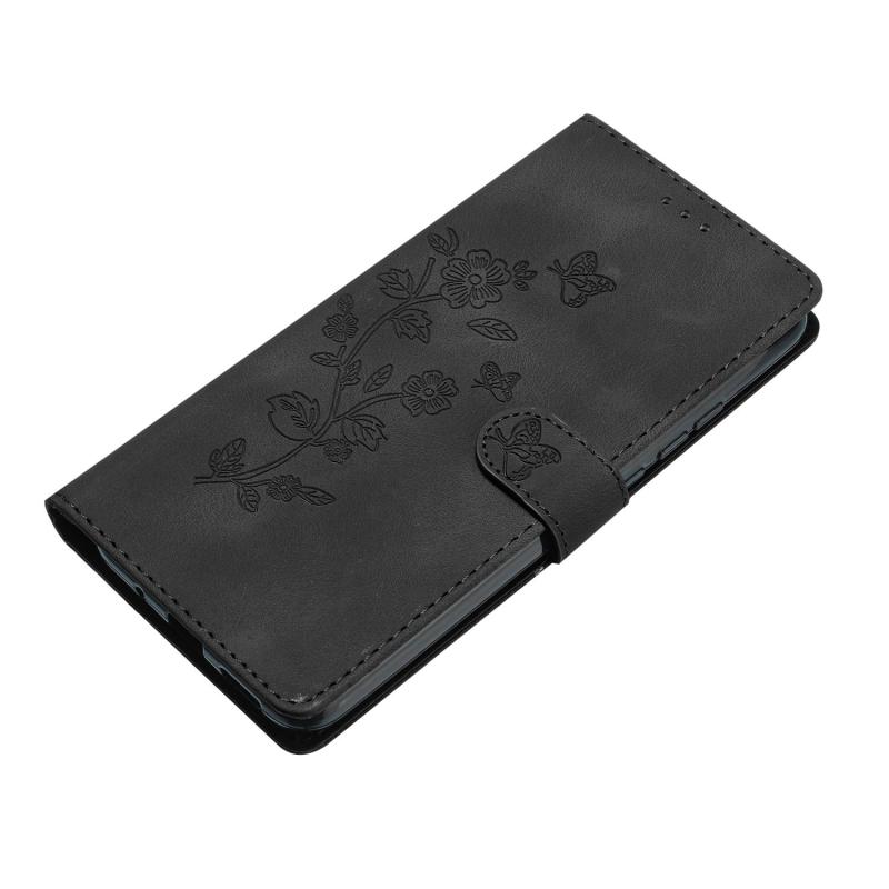 For Samsung Galaxy S25 Edge 5G Flower Butterfly Embossing Pattern Leather Phone Case(Black)
