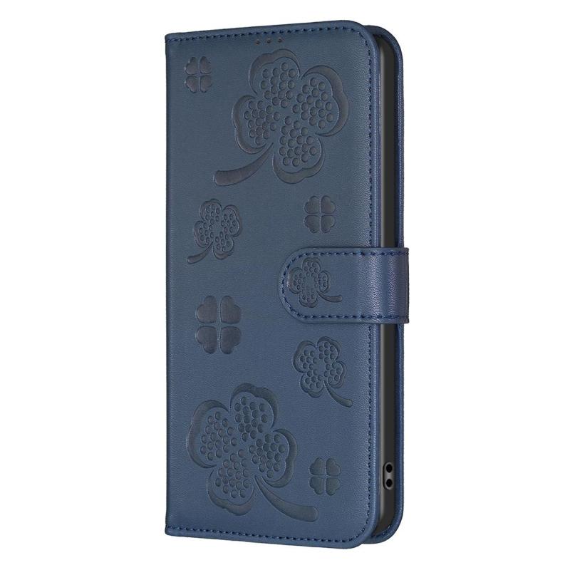 For Samsung Galaxy S25 Edge 5G Four-leaf Embossed Leather Phone Case(Blue)
