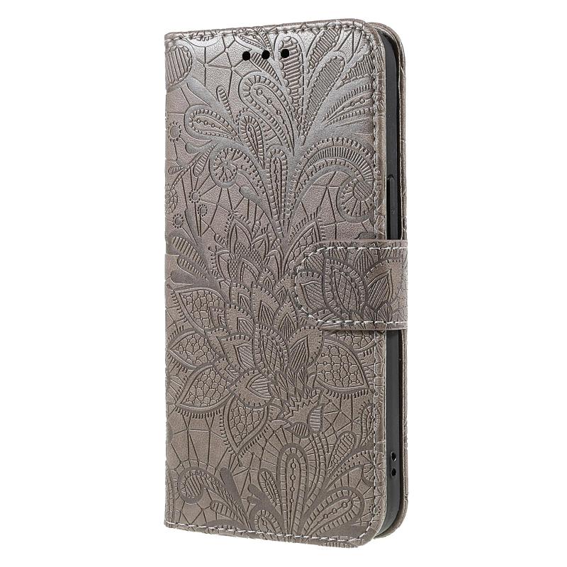 For Samsung Galaxy S25 Edge 5G Lace Flower Embossing Flip Leather Phone Case(Grey)