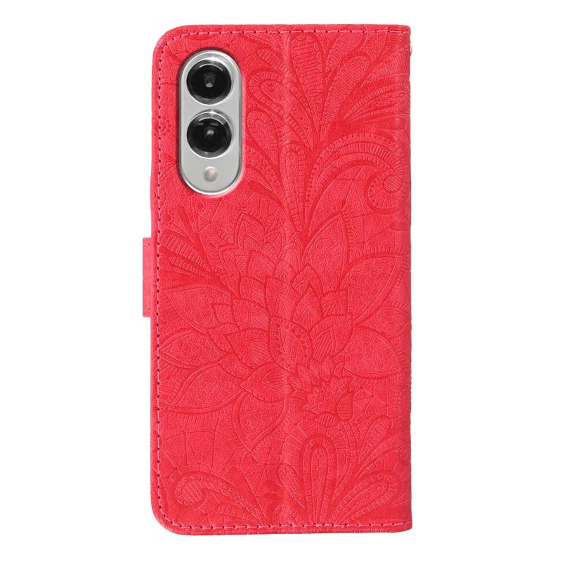 For Samsung Galaxy S25 Edge 5G Lace Flower Embossing Flip Leather Phone Case(Red)