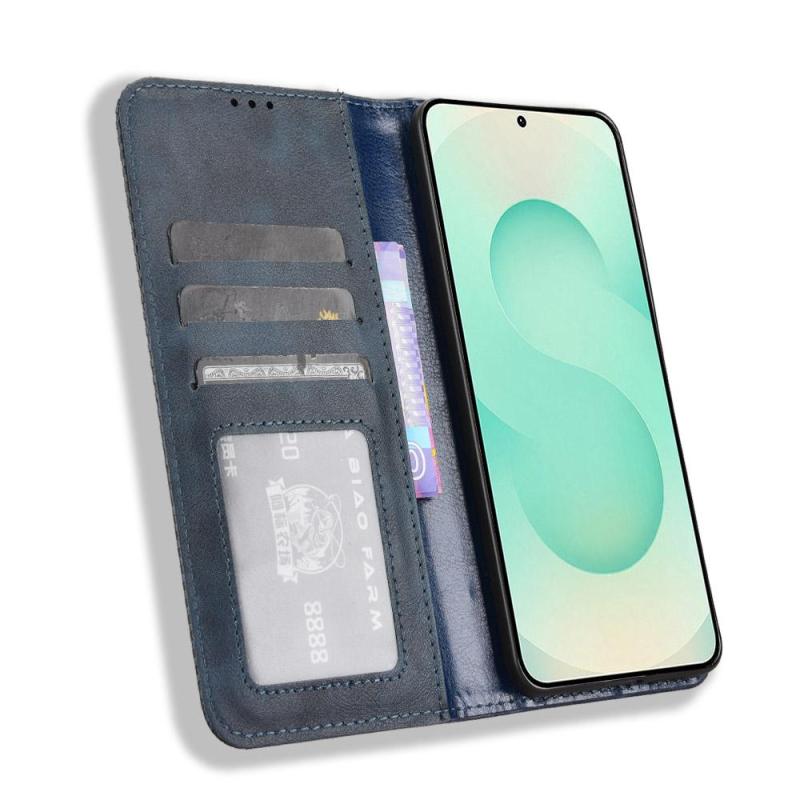 For Samsung Galaxy S25 Edge 5G Magnetic Buckle Retro Texture Leather Phone Case(Blue)