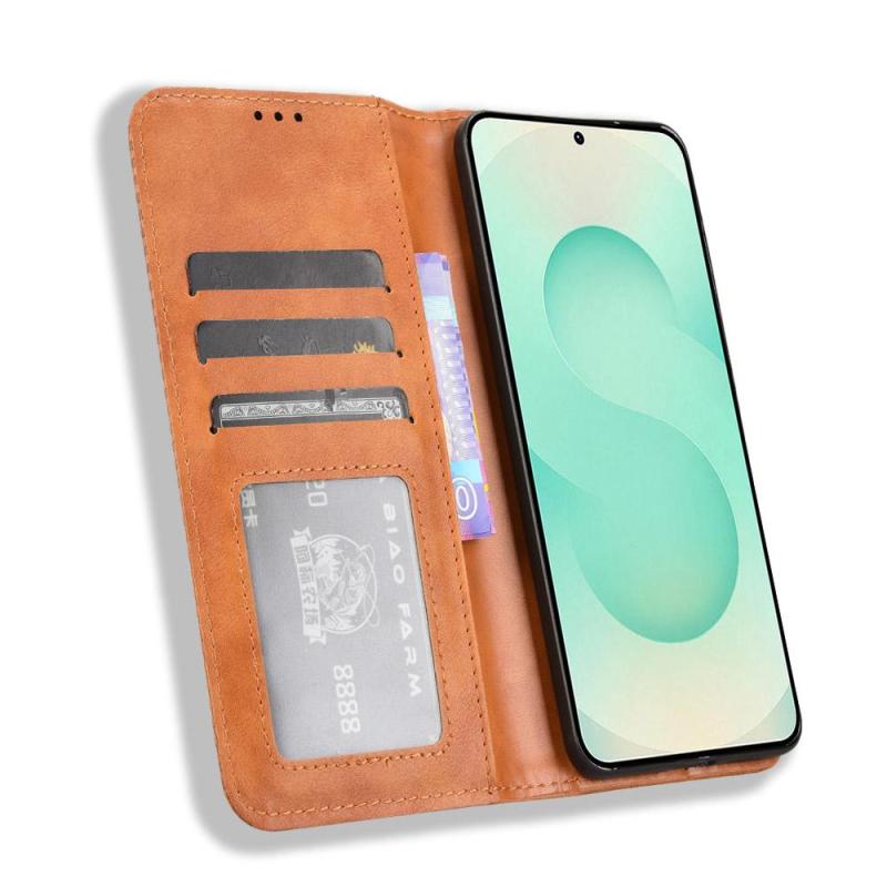 For Samsung Galaxy S25 Edge 5G Magnetic Buckle Retro Texture Leather Phone Case(Brown)