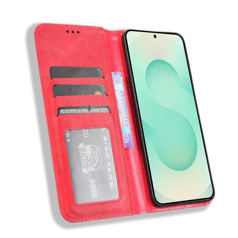 For Samsung Galaxy S25 Edge 5G Magnetic Buckle Retro Texture Leather Phone Case(Red)
