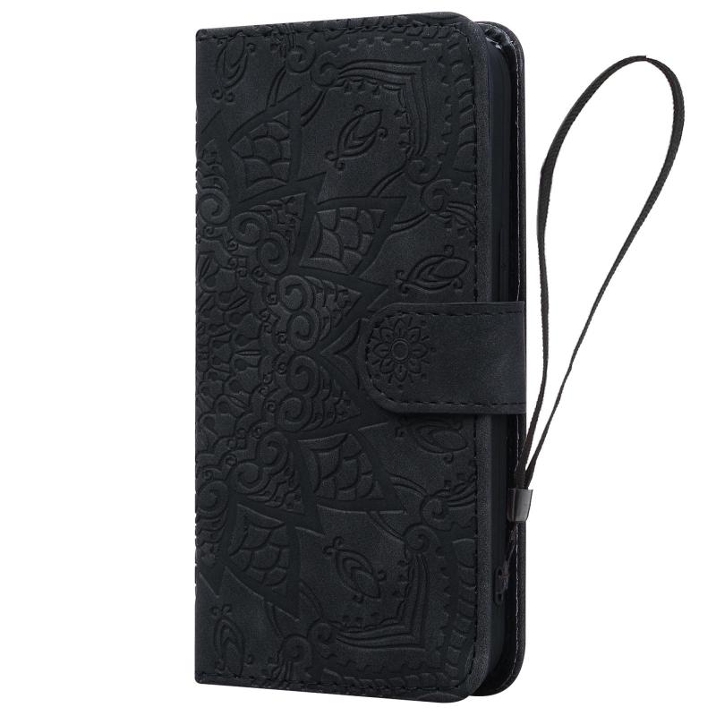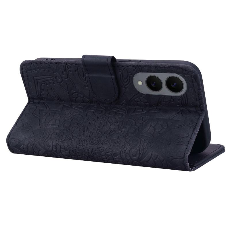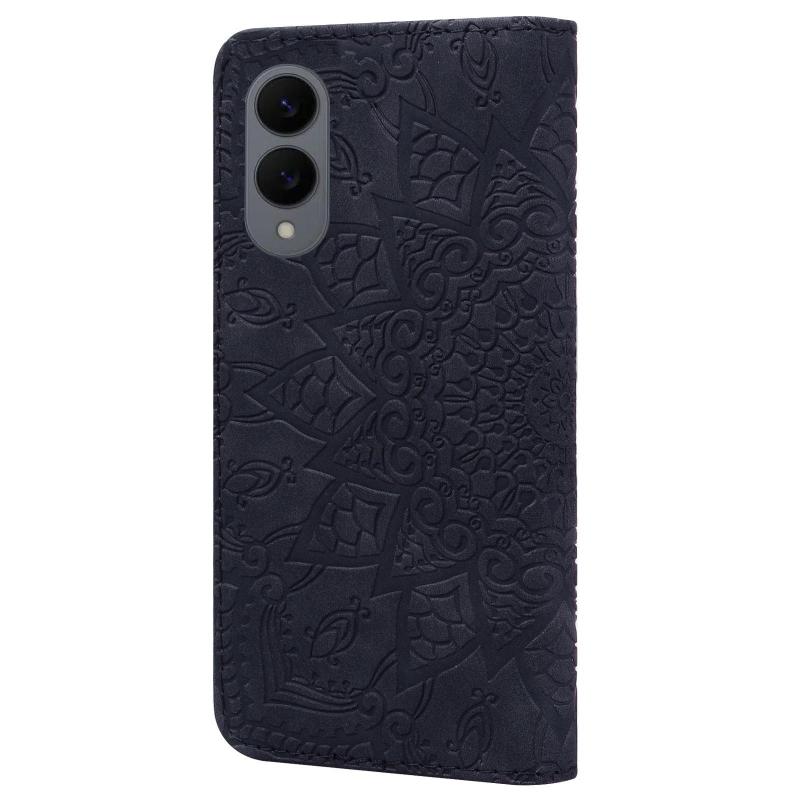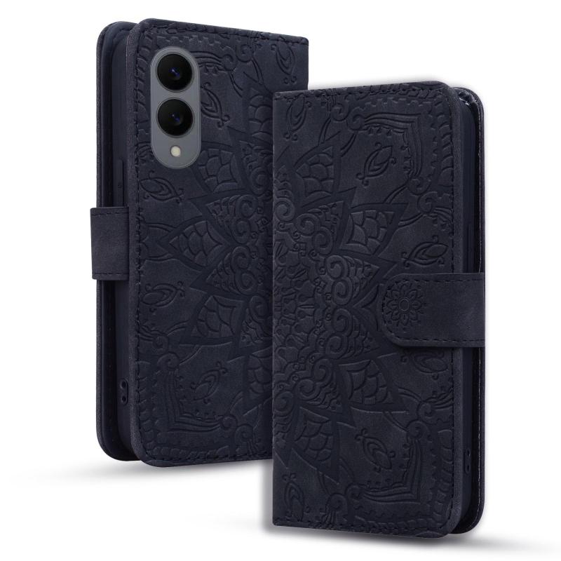 For Samsung Galaxy S25 Edge 5G Mandala Embossed Dual-Fold Calf Leather Phone Case(Black)