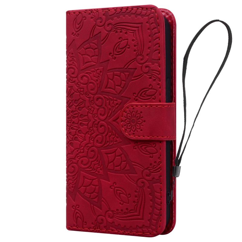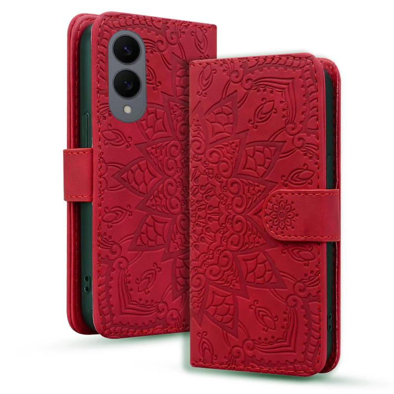 For Samsung Galaxy S25 Edge 5G Mandala Embossed Dual-Fold Calf Leather Phone Case(Red)