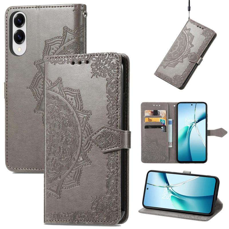 For Samsung Galaxy S25 Edge 5G Mandala Flower Embossed Leather Phone Case(Gray)