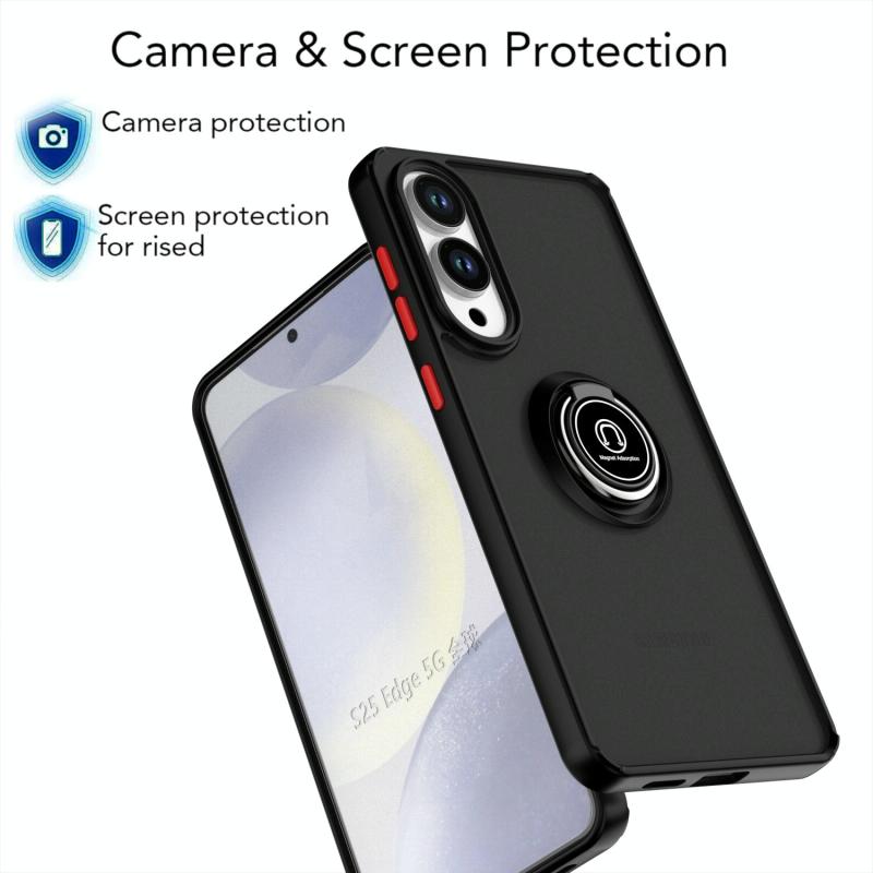 For Samsung Galaxy S25 Edge 5G Q Shadow 1 Series TPU + PC Phone Case with Ring(Black+Black)
