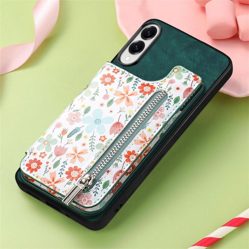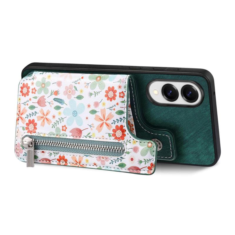 For Samsung Galaxy S25 Edge 5G Retro Painted Zipper Wallet Back Phone Case(Green)