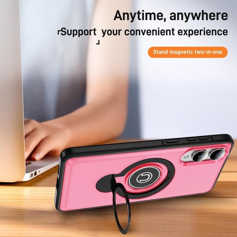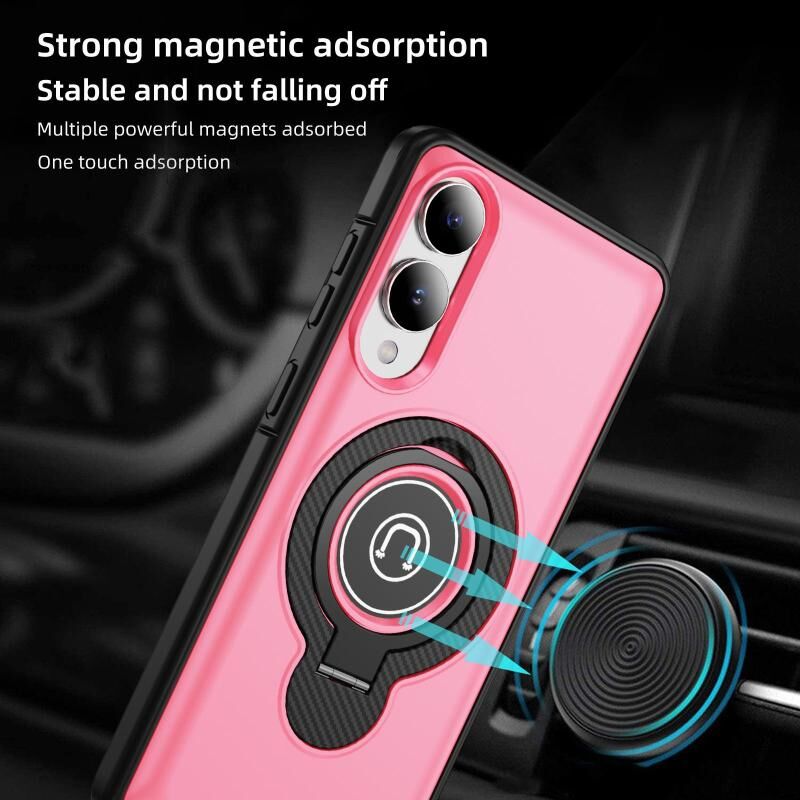 For Samsung Galaxy S25 Edge 5G Ring Holder Magnetic Phone Case(Bright Pink)