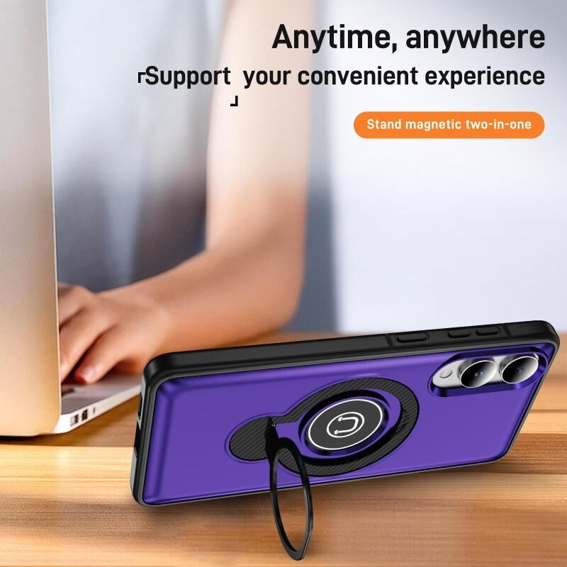 For Samsung Galaxy S25 Edge 5G Ring Holder Magnetic Phone Case(Purple)