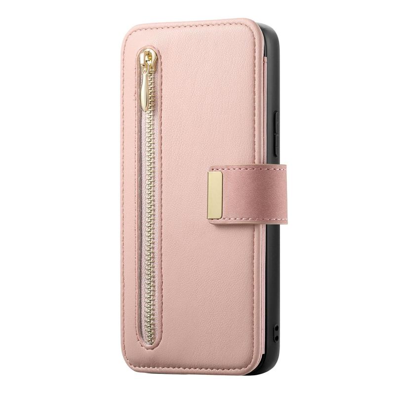 For Samsung Galaxy S25 Edge 5G Ring Zipper Wallet RFID Blocking MagSafe Leather Phone Case(Pink)