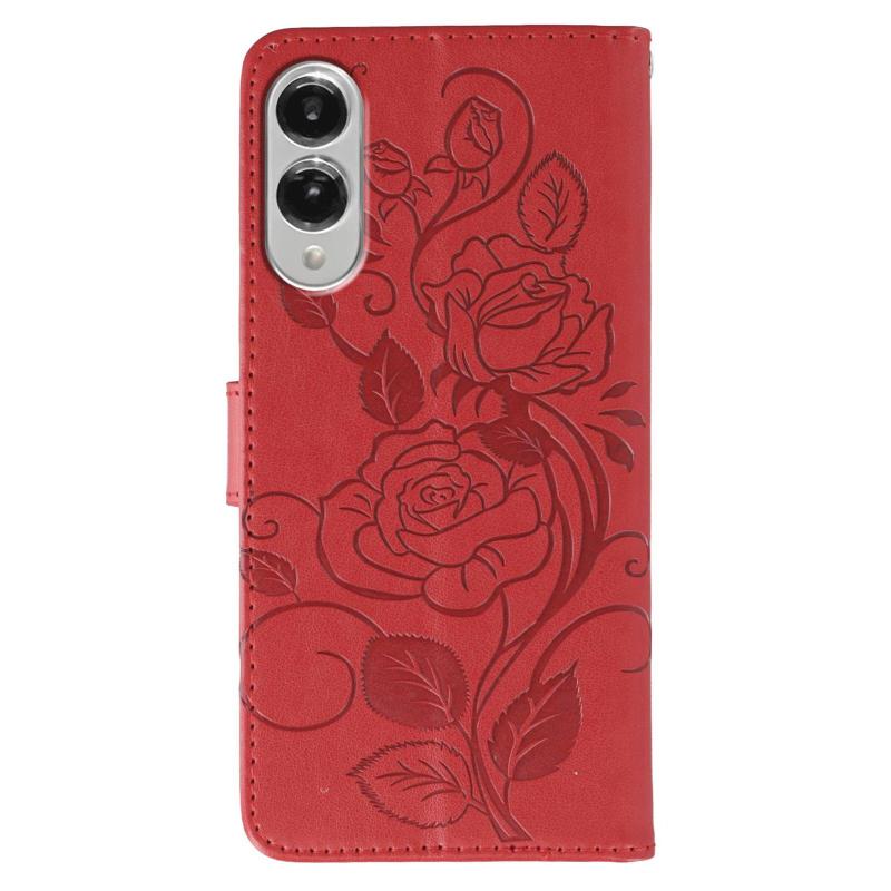 For Samsung Galaxy S25 Edge 5G Rose Butterfly Embossed Leather Phone Case(Red)