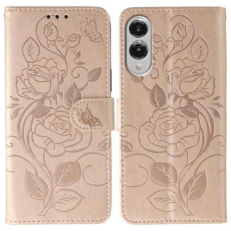 For Samsung Galaxy S25 Edge 5G Rose Butterfly Embossed Leather Phone Case(Rose Gold)