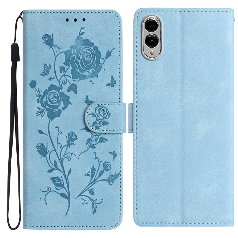 For Samsung Galaxy S25 Edge 5G Rose Flower Embossing Pattern Leather Phone Case(Sky Blue)
