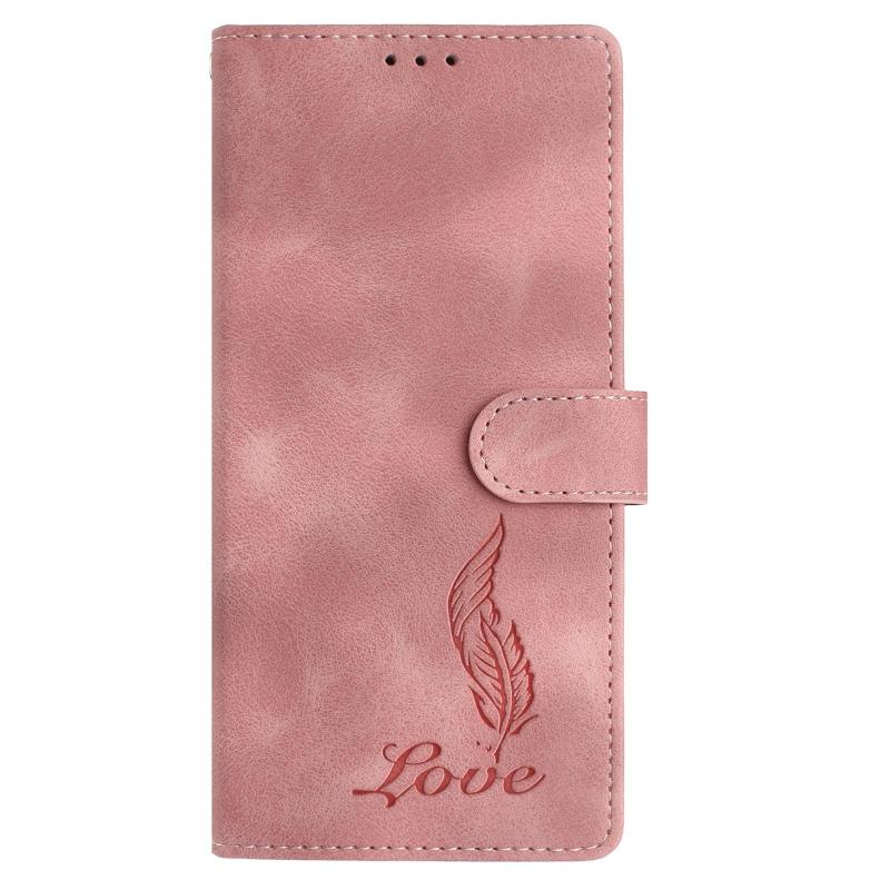 For Samsung Galaxy S25 Edge 5G Skin Feel Embossed Feather Leather Phone Case(Pink)
