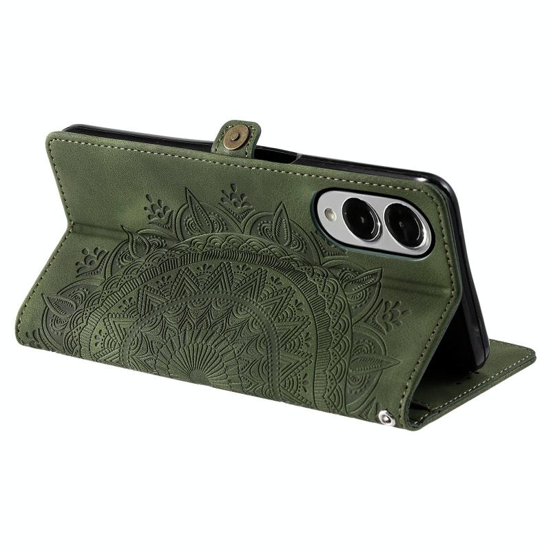 For Samsung Galaxy S25 Edge 5G Skin Feel Totem Embossed Leather Phone Case(Deep Green)