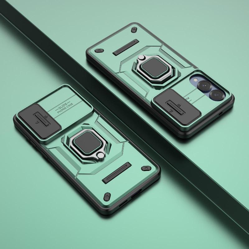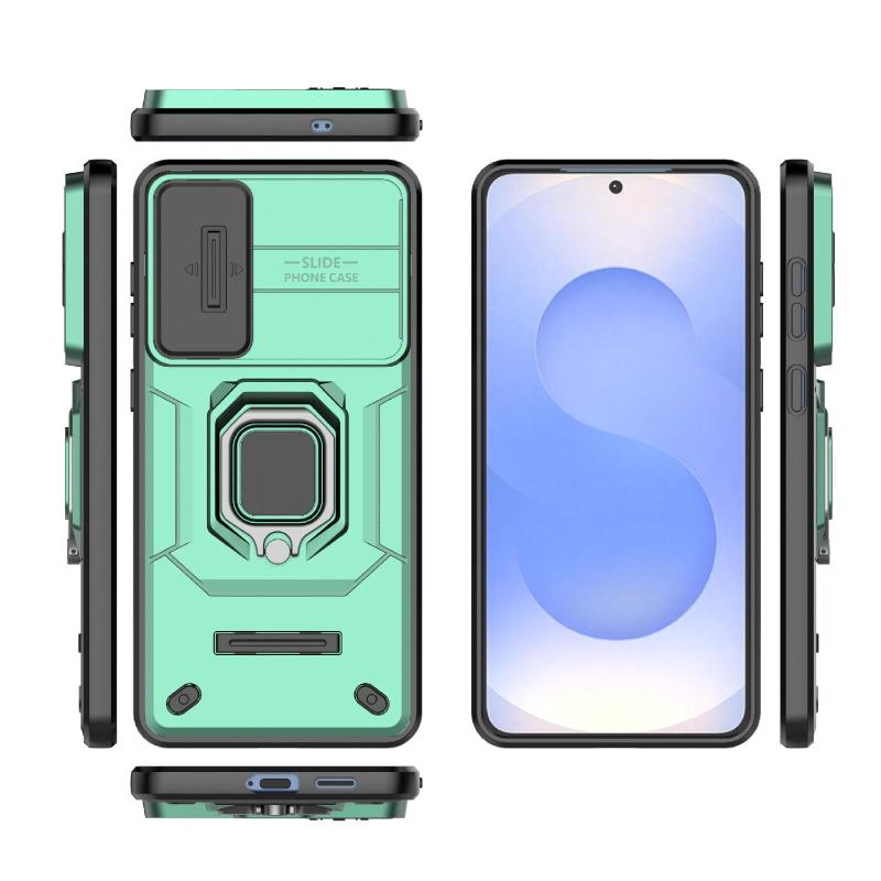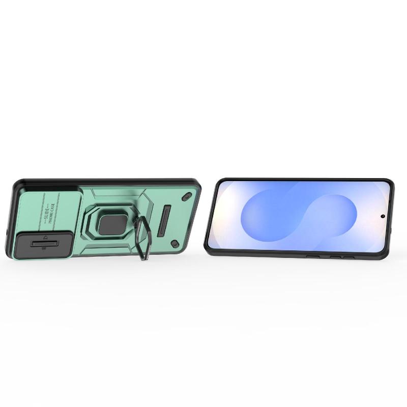 For Samsung Galaxy S25 Edge 5G Sliding Camshield TPU + PC Shockproof Phone Case with Holder(Green)