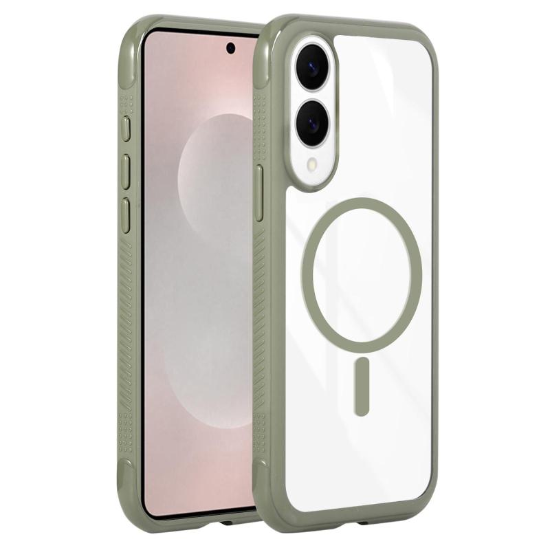 For Samsung Galaxy S25 Edge 5G Solid Color Edge Transparency MagSafe Magnetic Phone Case(Army Green)