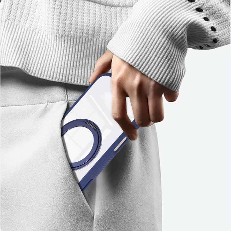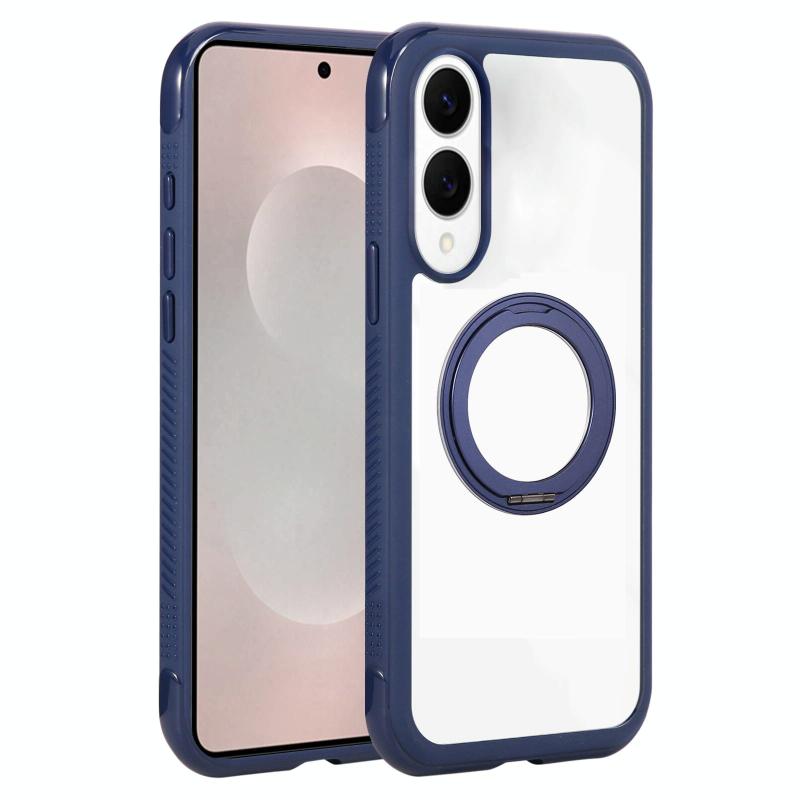 For Samsung Galaxy S25 Edge 5G Solid Color Edge Transparency Rotation Holder MagSafe Phone Case(Royal Blue)