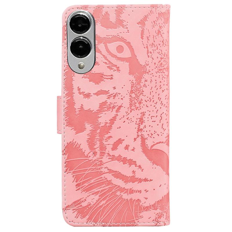 For Samsung Galaxy S25 Edge 5G Tiger Embossing Pattern Flip Leather Phone Case(Pink)