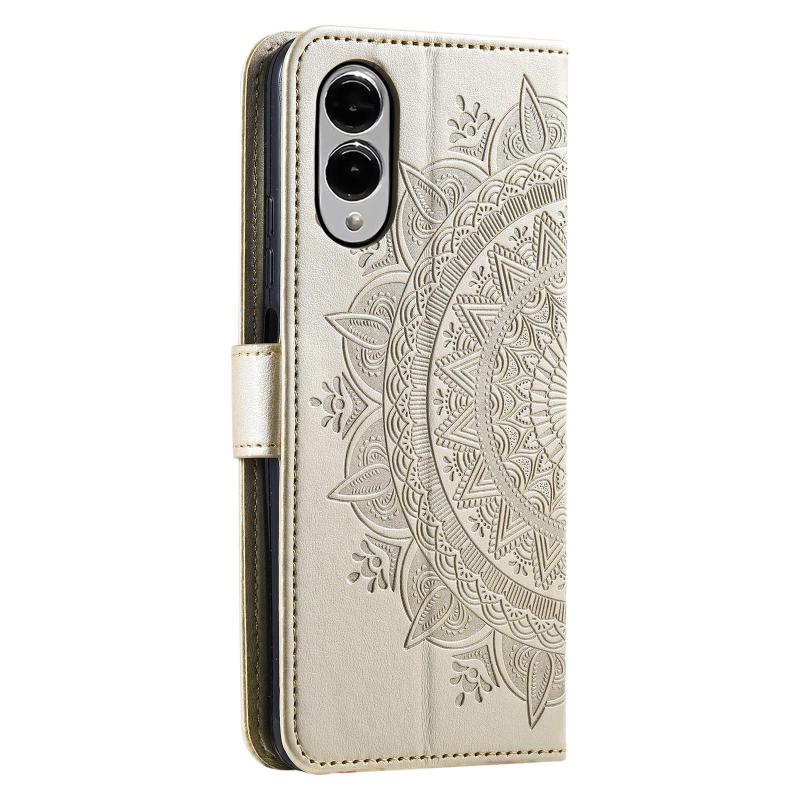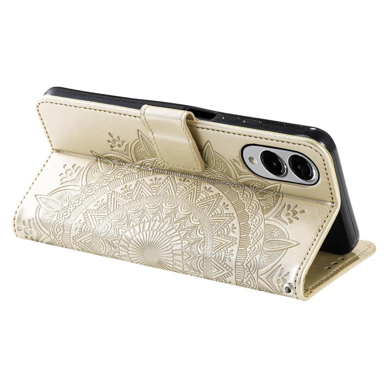 For Samsung Galaxy S25 Edge 5G Totem Flower Embossed Leather Phone Case(Gold)