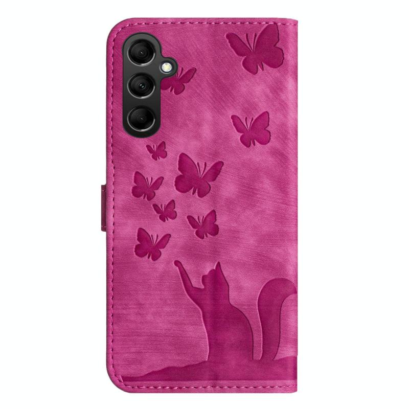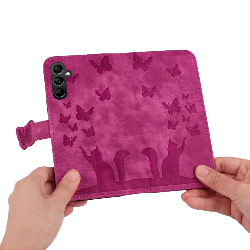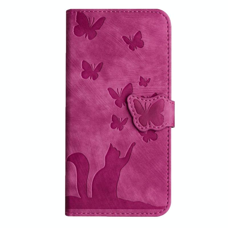 For Samsung Galaxy S25 FE 5G Butterfly Cat Embossing Flip Leather Phone Case(Pink)