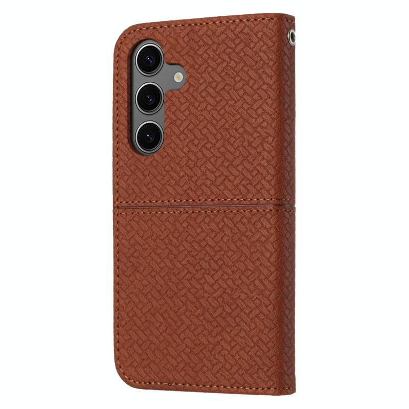 For Samsung Galaxy S25 FE 5G Woven Texture Stitching Magnetic Leather Phone Case(Brown)