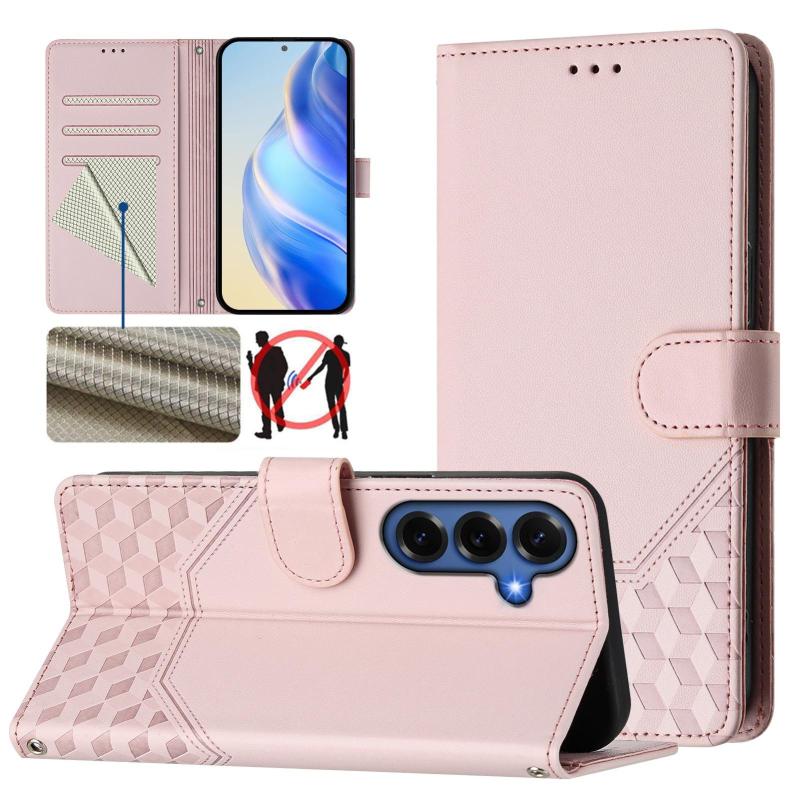 For Samsung Galaxy S26+ 5G Honeycomb Embossing RFID Leather Phone Case(Pink)